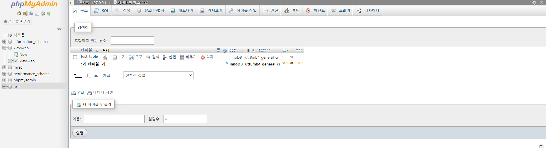 아래 그림과 같이, test_table이란 TABLE이 잘 생성되었네요.